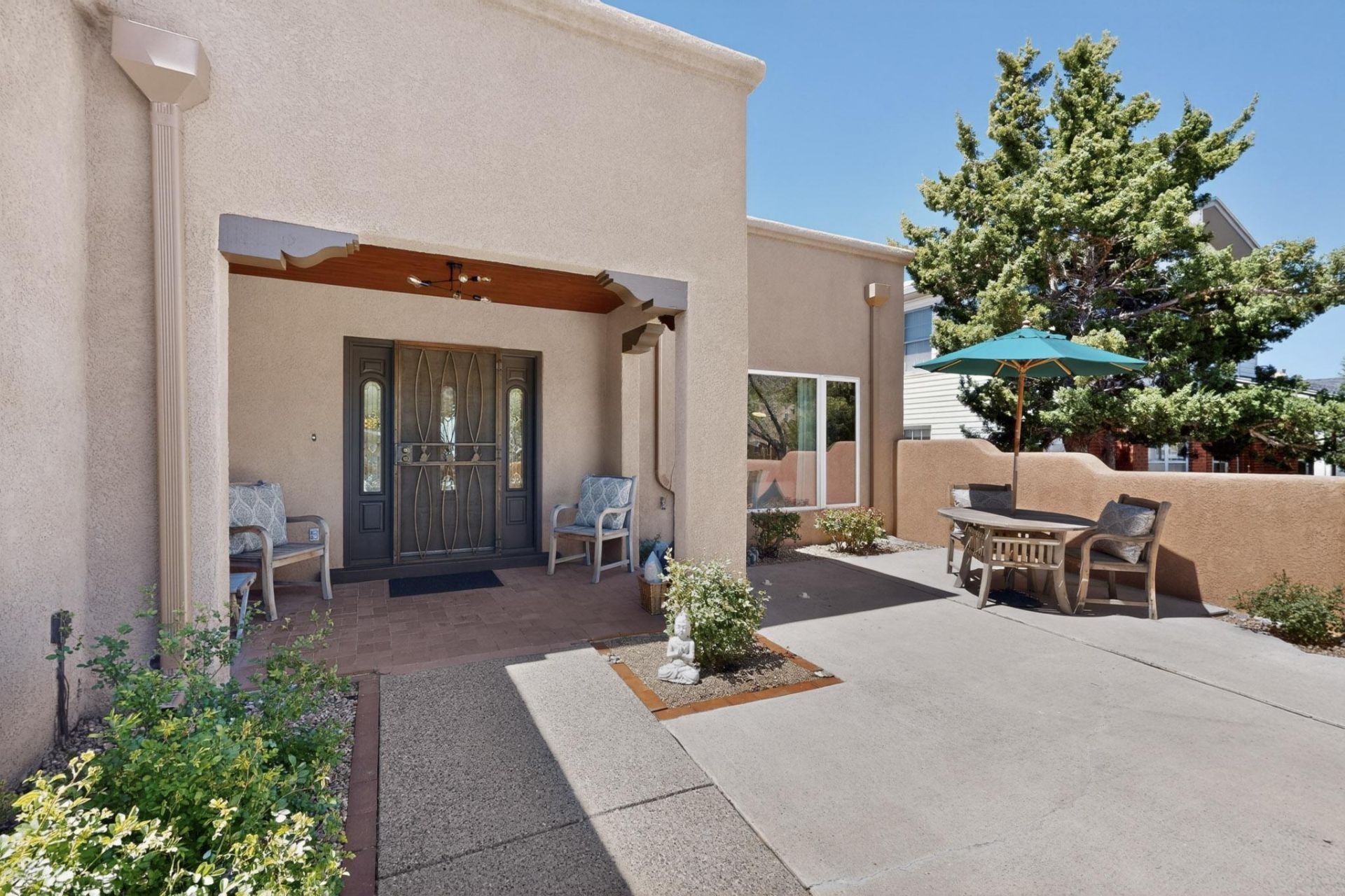 Located in the highly desirable Sandia Foothills, this distinctive Architectural Contemporary Southwestern home blends striking design with effortless indoor-outdoor living. A welcoming front courtyard sets the tone, offering a peaceful space to enjoy morning coffee with eastern mountain views. Inside, the thoughtfully designed floor plan places the primary suite and main living areas on the main (upper) level, maximizing light, views, and everyday convenience. The heart of the home is a beautifully renovated kitchen (2024), featuring new cabinetry, upgraded appliances, granite countertops, cooktop, and wall oven with convection, all opening seamlessly to an expansive west-facing deck--perfect for taking in Albuquerque's unforgettable sunsets and evening city lights. With access from both