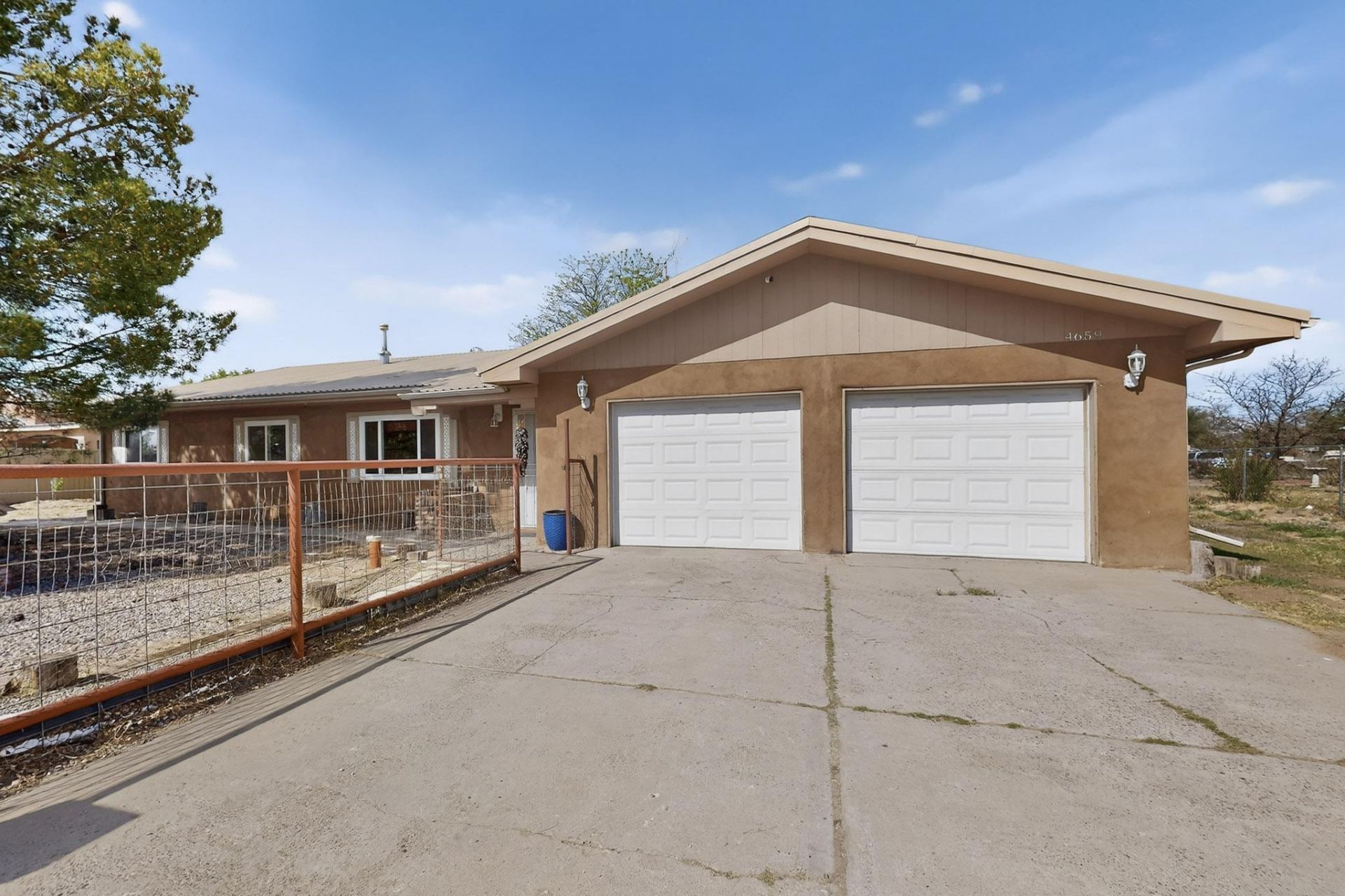 Spacious and versatile home featuring a large kitchen, dual living areas including a generous family room, 3 bedrooms plus an office or potential 4th bedroom, and a very spacious primary suite. Enjoy laminate and tile flooring, recessed lighting, ceiling fans, and updated windows throughout. Situated on a half-acre lot, the exterior offers a metal roof with gutters, walled front yard, and privacy-fenced backyard with access on both sides. Relax under the covered back porch with water feature, mature shade and fruit trees. 24x24 carport, additional 20x20 carport (ideal shop potential), plus attached 2-car garage with 220. A great place with room to live, work, and enjoy for years to come. Just ask how to use the 30,000 Valencia county home buyer's grant for this home!
