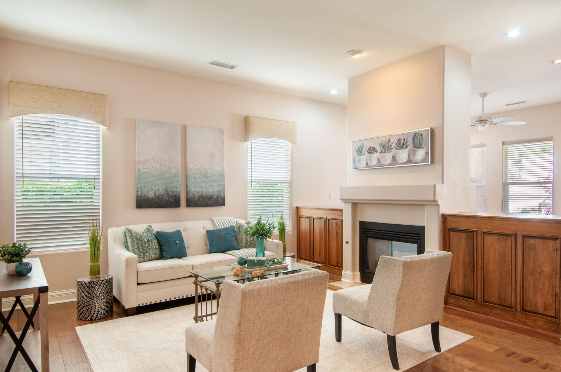 This beautiful, immaculate single level home is in a gated High Desert community. Designed for comfort and versatility, this flexible floorplan adapts to your lifestyle. Multiple living areas offer different possibilities for living: formal living, dining, a cozy den, or an office. A striking two-way fireplace creates ambiance while connecting the main spaces beautifully. The kitchen has warm, natural cabinetry with stainless appliances & a gas cooktop, and separate pantry. The generous primary is a true retreat, with an exterior door that leads to the tastefully xeriscaped backyard. Primary full bath has jetted tub, dual sinks, separate shower and walk-in closet. Enjoy your patio with a hint of the Sandias nearby. Abundant storage in the home and x-long garage.