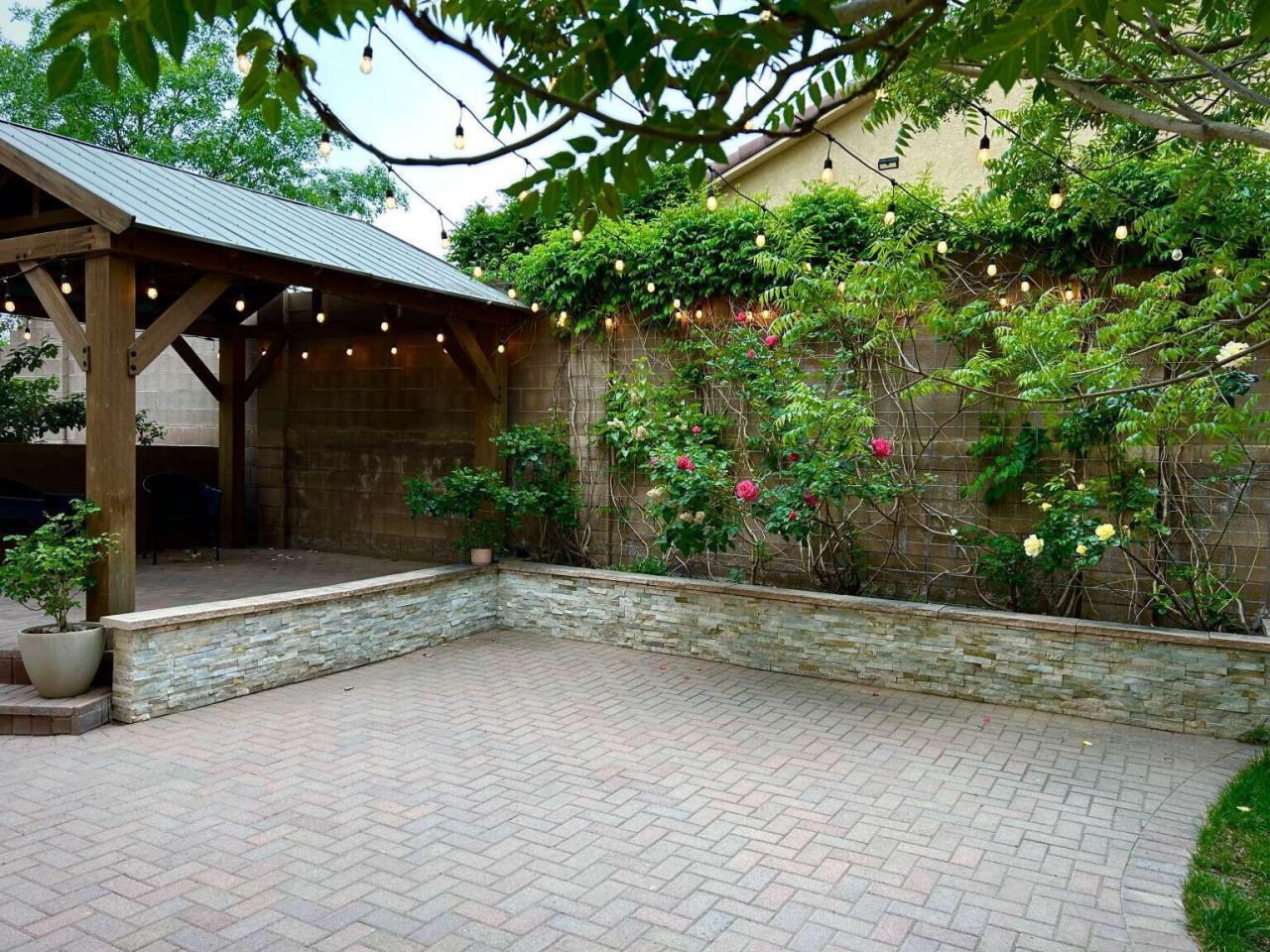 Rare New Mexico Gem with a Stunning Backyard Getaway. Experience tranquil living in this beautifully curated residence, where modern interior finishes are paired with a beautifully designed private backyard retreat, creating an exceptional indoor-outdoor lifestyle. Interior has new stainless steel appliances, refinished cabinetry, newly tiled downstairs, shiplap accent walls, large primary suite soaking tub, remodeled guest bath, and bright windows on both levels overlooking the backyard getaway. Backyard is complete with herringbone-style patio, elevated terrace, gazebo, and cafe string lighting mature trees, rose bushes, trumpet vines, lush lawn, and organic strawberry patch,--ideal for elevated entertaining.