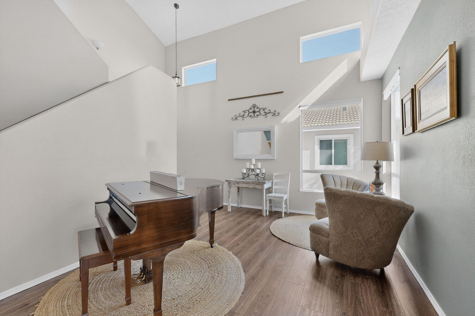 If you've been looking for that ''this feels different'' kind of home, this is it. Backing to the Bosque Open Space with Sandia Mountain views, this home offers a blend of updates, natural light, and flexible living. Built in 2000, it features 3 bedrooms plus a possible 4th or flex space. The kitchen was renovated in 2016 and opens to the main living area, where sunlight fills the space and a fireplace, updated in 2022, creates a warm focal point. Additional updates include double-hung front windows (2023) and a front door replacement (2022). Solar panels, installed in 2025 add efficiency and long-term value. With easy access to nearby trails and open space behind the home, this property offers a setting that truly stands out.