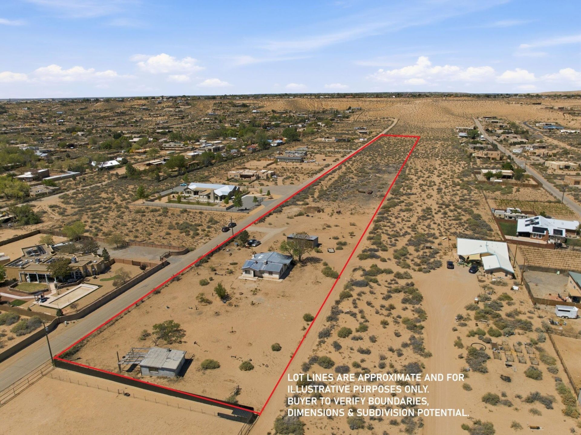 Rare opportunity to own 7.4 acres in the Village of Corrales offering breathtaking, elevated views of the surrounding landscape. One of the last remaining large parcels in Corrales this property presents exceptional potential for redevelopment, subdivision, or a private estate (buyer to verify all possibilities with the Village of Corrales). The elevated setting and unique topography create the opportunity for view-ororiented homesites in a highly desirable market where large parcels are increasingly scarce.Opportunities of this size, location, and view profile in Corrales are extremely limited.The property includes a 1568 sq ft home and outbuildings. However, the property is being marketed for its land value and future potential .Existing structures are conveyed in as-is condition