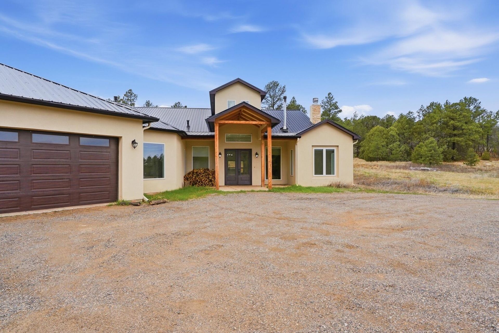 Welcome to this beautifully built 2023 home, that sits on 6.6 acres nestled in the peaceful East mountains just 20 minutes away from Albuquerque offering privacy, space and modern comfort with no HOA restrictions. Designed with both functionality and style in mind, this property features 2,630 sq ft and an oversized 3-car garage with extended depth-perfect for vehicles, storage or a workshop. This home offers two wood/propane fireplaces and another wood burning stove in the very spacious living room. All utilities can be found on this property, a well has already been established as high producing. There is also a spacious shed on the south side of the property which is perfect for extra storage. This property offers the perfect balance of rural freedom and modern convenience.